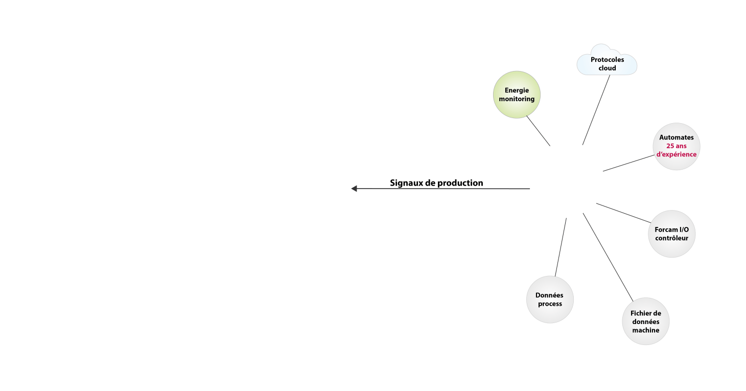 Grace aux templates spécifiques à chaque automate déjà préconfigurés par FORCAM il sera possible de récupérer les signaux et garantir un état machine en quelques minutes seulement .